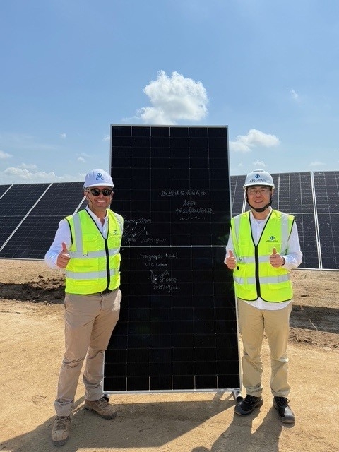 Signing the last module installation at the Baranoa 3 PV Plant alongside Chinese Ambassador to Colombia Mr. Zhu Jingyang.